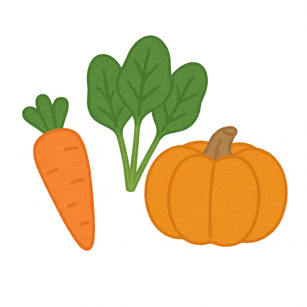 にんじんやほうれん草、かぼちゃに多く含まれています🥕