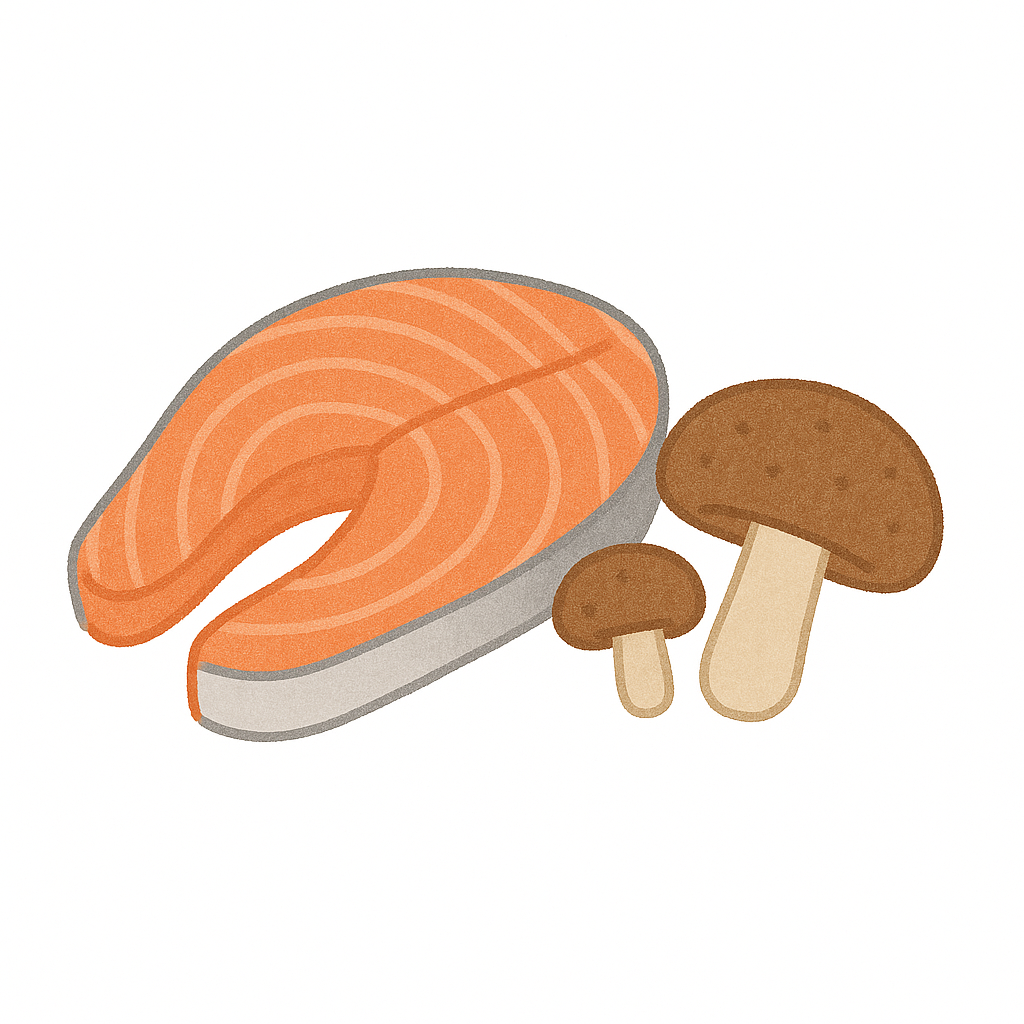 鮭などの魚介類やきのこ類に多く含まれています🐟