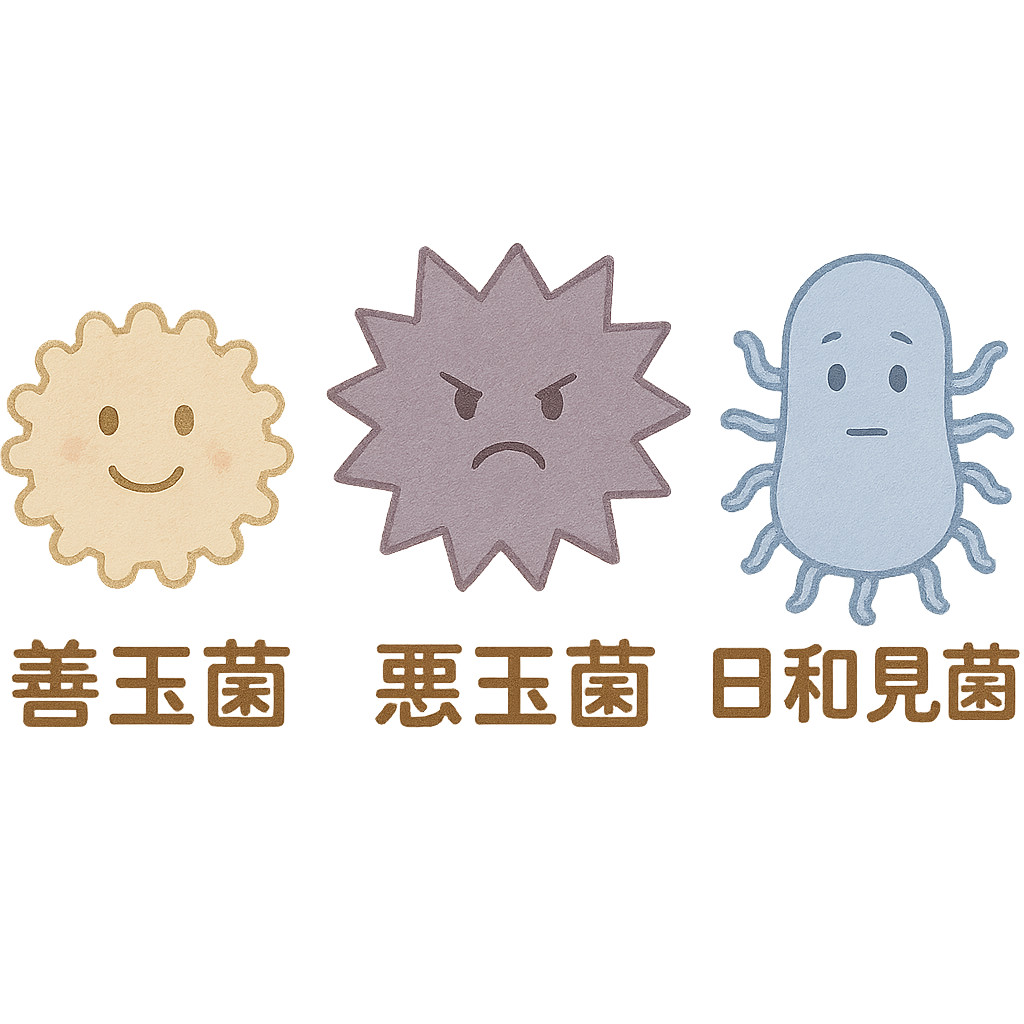 私たちの腸内にはたくさんの細菌が生息しており、大きく分けて「善玉菌」「悪玉菌」「日和見(ひよりみ)菌(どちらにも該当しない)」の3種類に分類することができます🌷