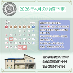 2026年4月およびゴールデンウイークの診療予定につきまして、ご案内申し上げます。